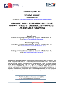 You are here: Home1 / 2 / Growing Pains: Supporting Inclusive Growth Through Understanding Women-led Business Exporting3 / ERC – ResPap122 ExecSum .GROWING PAINS.final