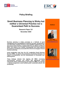You are here: Home1 / 2 / Small Business Planning is Sticky but neither a Universal Practice nor a Guaranteed Path to Success.3 / ERC – ResPap121 Policy Briefing Small business planning