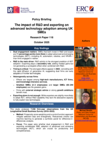 You are here: Home1 / 2 / The impact of R&D and exporting on advanced technology adoption among UK SMEs3 / ERC – ResPap118 Policy Briefing The impact of R&D and exporting...